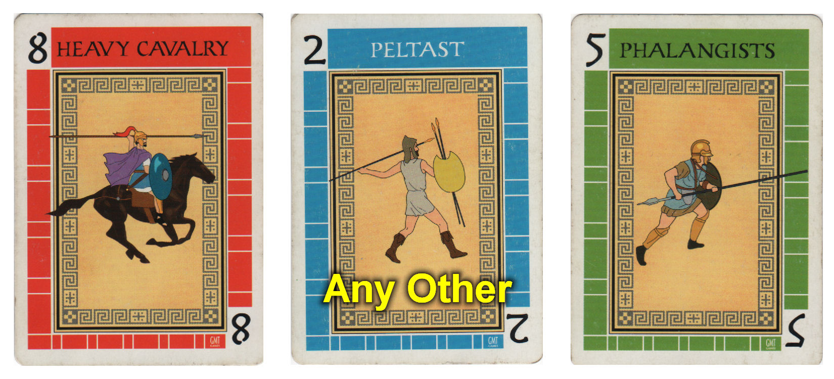 • Alexander: A true wild card. Play like a Troop card, but can represent any color/number you choose.