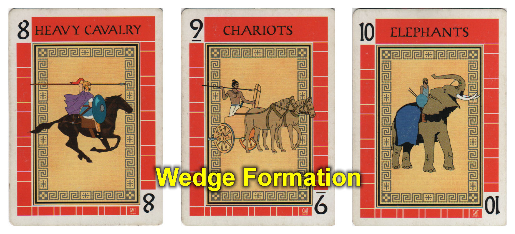 #1 – Wedge: Three cards of the same color with consecutive values (Poker equivalent: a straight flush). Battle Line Card Game Wedge Formation