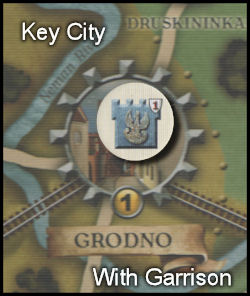 After combat, Reorganization orders are executed followed by Rail Movement orders. Then supply is judged. Infantry units must be within three spaces of a friendly Key city that can trace supply back to a supply source which is Warsaw for the Polish and the Soviet Eastern links for the Russians. Cavalry can trace five spaces. Units out of supply are marked by an out of supply marker and suffer one strength point of attrition.