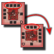 A player can have seven cards in his hand. Each card can be utilized in one of four different ways. In the upper left-hand corner is the Order Modifier which gives the player additional orders beyond the 2 he gets at the start of each operation phase. This can be critical because one of his 2 orders will be the mandatory Recon order, leaving him only one order to move or defend. A player who does not utilize the Order Modifier will most likely cede the operational initiative to his opponent for that phase.