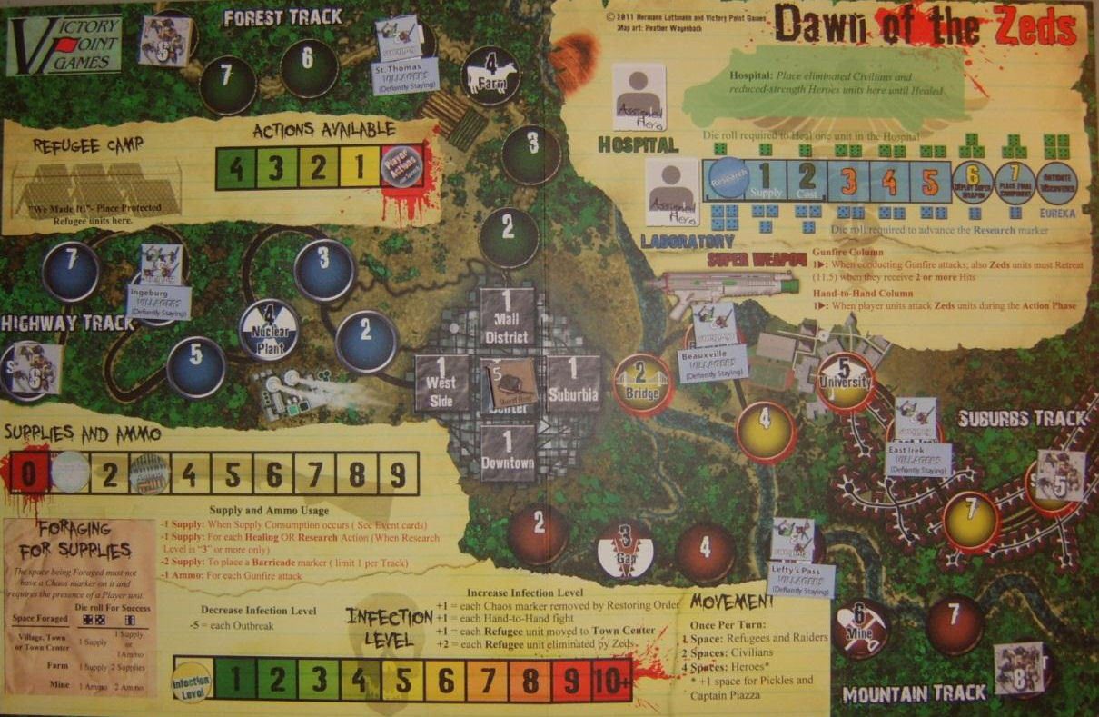 –Growing Despair: Zed units in spaces 3, 2, or 1 each give a 50% chance to cause a hit to Civilian units