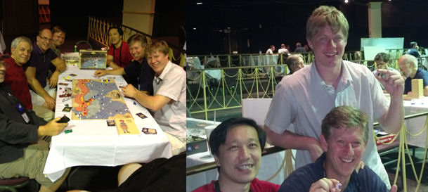 Overcoming the British advantages in this game is not easy and requires patience, proper card management and some luck during the turn order sequence. Nevertheless, as our experience has grown with the game, the Americans can indeed win! In point of fact, we were so confident that the British advantages were overwhelming, that the guys at TheBoardGamingLife challenged the Academy Games crew, Uwe Eickert and his son Gunter, to win a game playing the Americans at the World Board Gaming Championships in Lancaster Pennsylvania.