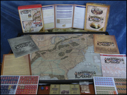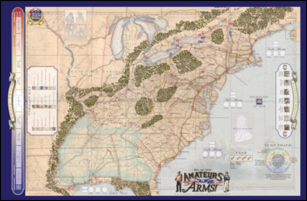 It is therefore appropriate that there is renewed interest in the war gaming community regarding this conflict. Three games will have been published before year’s end on this topic. Few have dealt with the war in its entirety. Instead most choose to focus on the Canadian border where many of the important naval actions and campaigns occurred. Amateurs to Arms, a two player, card driven, strategic board game of the war of 1812 from Clash Of Arms, differs in this respect as it covers all the theaters in the continental United States and Canada.