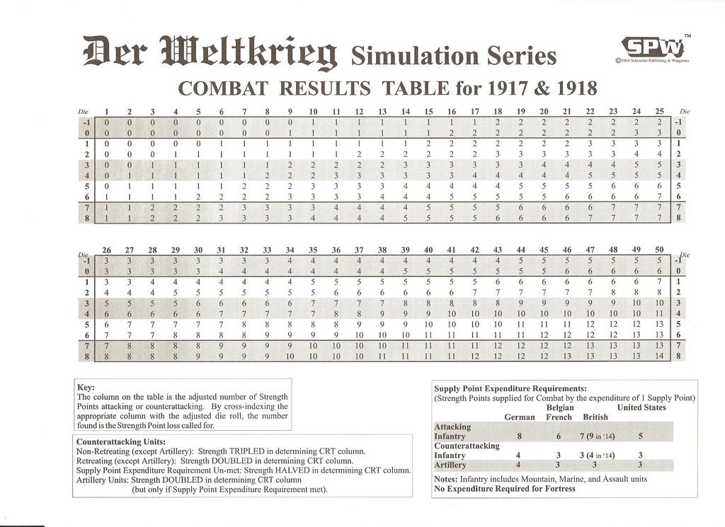 The remaining components consist of the various charts and displays with are either absolutely integral to play, such as the combat charts, or else are semi optional play aids. These all lean towards functionality over aesthetic appeal, and might, in certain cases, be readily described as very basic. But they all do a job, and the combat charts are very easy to use. One thing I feel has to be stressed is the need to use the corps displays. These provide a means to replace large stacks of units (as often as not divisions on the Western or Italian Front) with a corps unit linking to a display space on a separate sheet. These really are a must for ease of play (doing the maths for combat and finding particular units for scheduled withdrawals), and I just wish Enrico had used them when doing his filmed play-through as they would have made his experience that bit less frustrating.