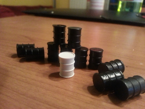Supply is monitored using little plastic black and white barrels while the color-coded plastic production factories come in white, red, blue and black accounting for the various kinds of production points they provide (respectively general production, armor points, aircraft points and hydrogenation for the Germans synthetic fuel production). Small cubes of various colors help track the various types of production points in your supply pool.