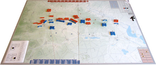 The three games fall readily into two sub-groupings – in one are the two Napoleonic offerings, on Marengo and Austerlitz, and in the other, the designer’s Gettysburg title. There are certainly similarities between the first pair and the Gettysburg game, but ultimately, and through the need to represent basic military realities, the Civil War design is a different creature to its sires. What are held in common are the overall aesthetic approach and the concept of dice-less combat resolution fed by fog of war.  It is worth pausing here to consider what is actually meant in the context of these games by the matter of their aesthetic, especially in the physical sense. Naturally, all people connected to the hobby want their games to look good, but that is not quite what is meant with regard to the Simmons’ designs. Rather, if one looks at what Clash of Arms do with the likes of La Bataille or Age of Reason, where the likeness of the soldier’s garb is matched to a style of cartography symbolic of the period, we get a little nearer to what the Simmons aesthetic really means. One sees it also in the variably received (and designed) Eagles of the Empire series. Despite different companies taking the original concept in different directions, in essence this “series” was and is about portraying Napoleonic battles in a style that would recall the maps of David Chandler’s Campaigns of Napoleon, and provide both playing surfaces and unit rosters of manageable proportions.
