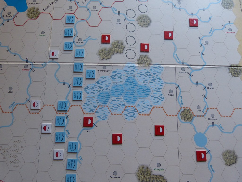 In what I must admit was probably a bit of a mistake, while the Soviets made full use of the end of turn redeployment phase to get their line rather more sorted, the Poles only moved one unit as the idiot in charge of them (me) wanted to keep the Warsaw reserves (several divisions) in place to see where future events might clearly prompt them to go.