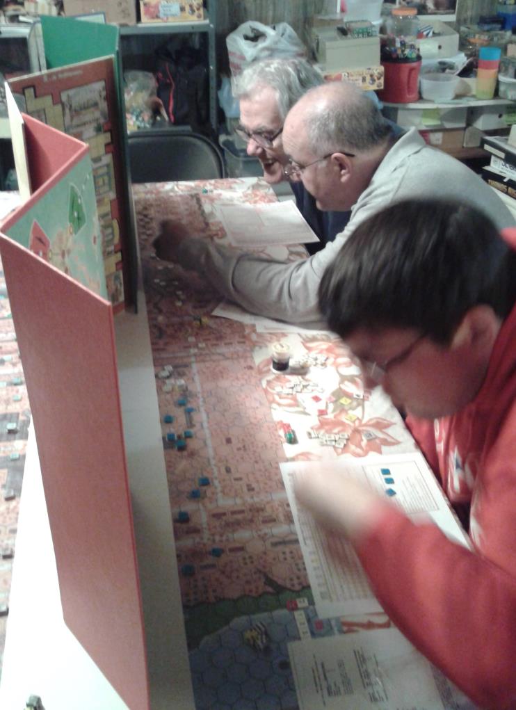 The Nationalist side: Ed (right), Fred (middle), and Dan (standing, although his sector was off map at bottom). Republican Sean at left. I run the green fellows at bottom of photo.